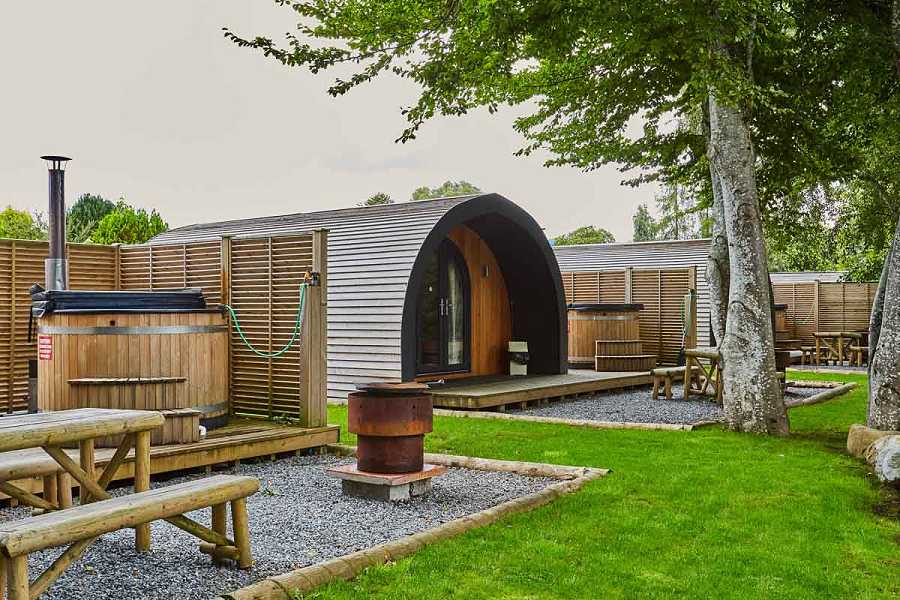 The Riverside Hideouts located on Braidhaugh Holiday Park on the southern tip of the Scottish Highlands are situated next to the River Earn and each has a private hot tub (two bags of complimentary wood for the hot tub provided).