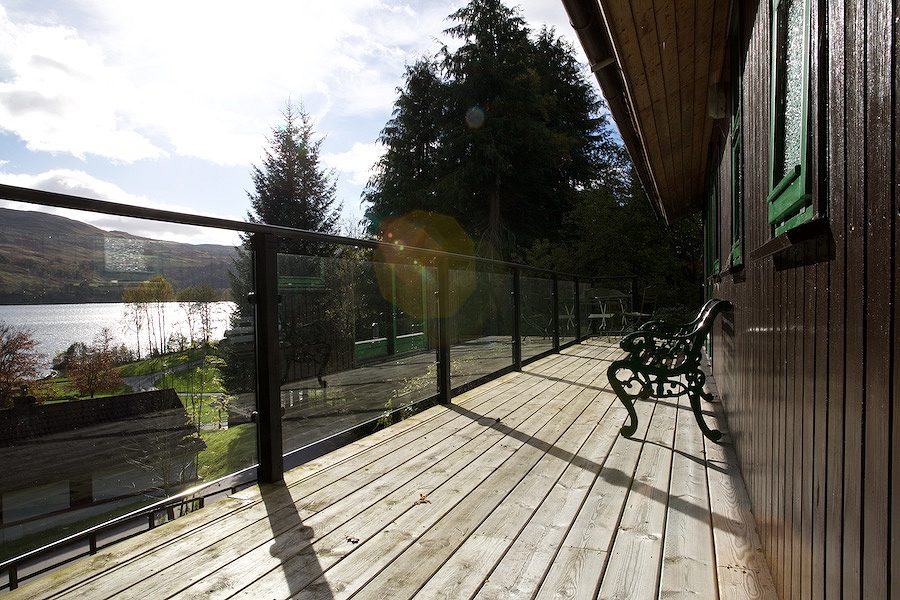Elm Tree Point at Loch Tay is set on a private 140 acre Highland estate, near Killin in Perthshire, in the Scottish Highlands. This 3 bedroom lodge has a beautiful setting with elevated, south-facing views of Loch Tay and the Highlands of Perthshire beyond. The furnished decking area has a fire pit (wood can be purchased from reception) and benches.