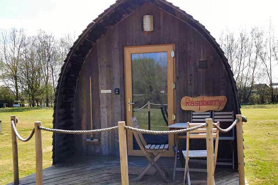 Raspberry glamping pod is situated at Wall Eden Farm, near Burnham-on-Sea, nestled in the stunning Somerset countryside.