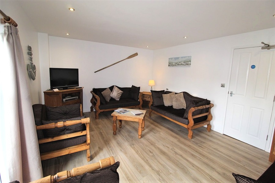 Top Sail’s spacious living area is situated on the first (middle) floor with direct access to two furnished balconies, one on each side of the property, where you can sit back and take in the river views or do a spot of sunbathing. The living area is split into two main rooms; a very well-equipped kitchen with a cooker, full size fridge/freezer, microwave, dishwasher and washing machine, plus a sturdy 8 person dining table and chairs; then there’s also a large sitting room with plenty of seating, a flat screen TV/DVD and access through patio doors to the balcony area. The lower floor houses two bedrooms, one en suite double and a twin room with separate shower room and WC. French doors lead out to a decking area with mooring. NOTE: part of the lower decking is unfenced (toddlers beware). On the top floor of the property there is another double bedroom and a second twin room, both with en suite bath/shower rooms (the two top floor bedrooms have a connecting door). The property has central heating and unlimited Wifi. Cots and Highchairs can be requested.